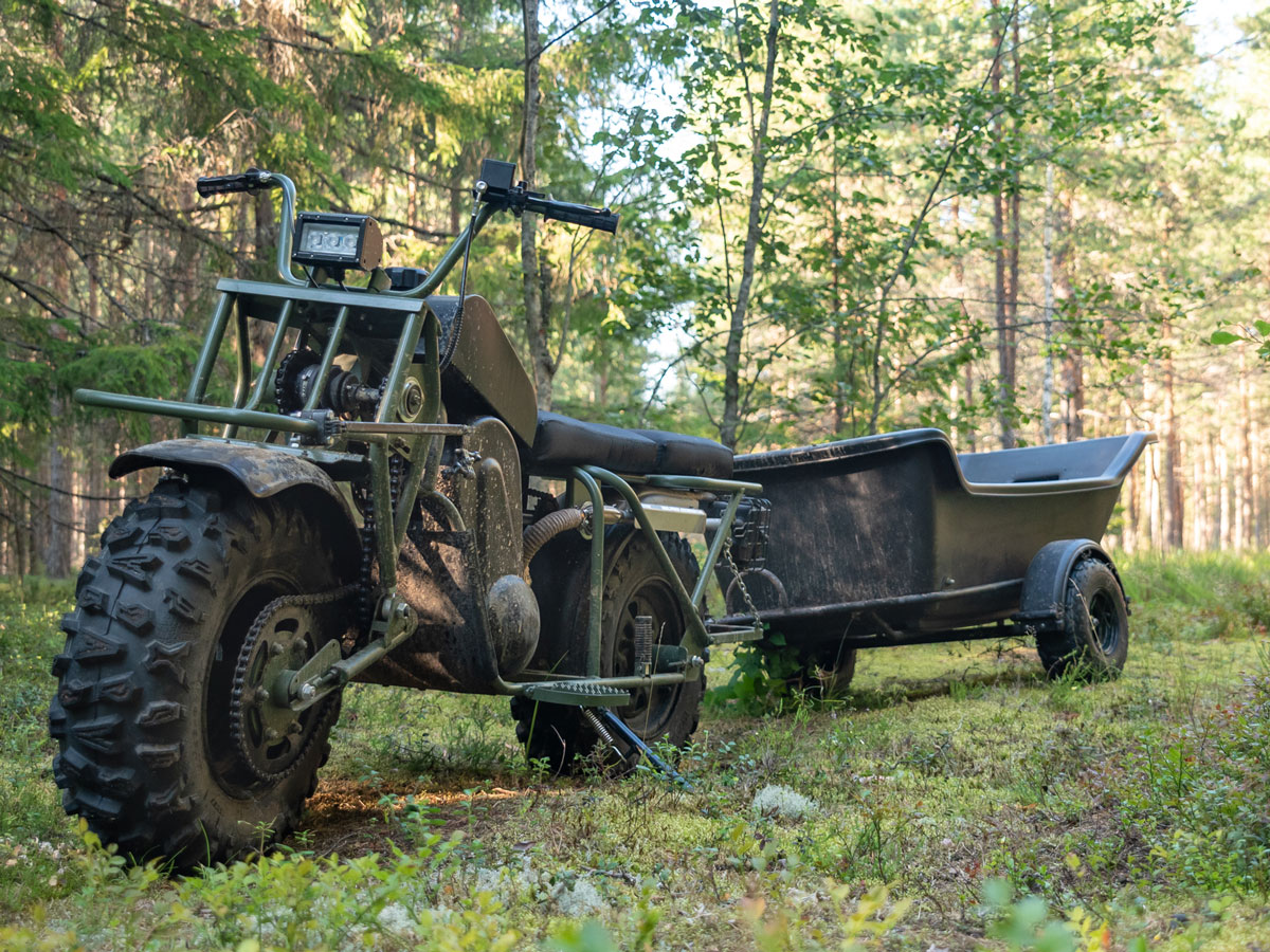 Крепкая рама из стальных труб, покрытых порошковым полимером, гарантируют долговечность и надёжность конструкции. Бескамерные шины низкого давления превосходно отрабатывают неровности твердого грунта, обеспечивая хорошую амортизацию.